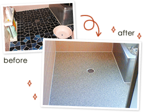 リフォームで平らな床に変身。水の流れがよくなったほか、ざらざら感がなくなったので心地よくなったとのご感想をいただきました。
